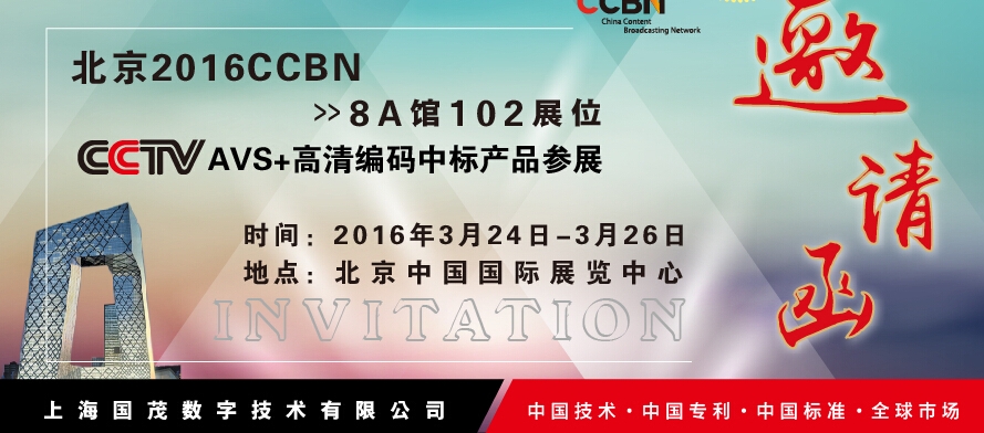 2016年3月24-26日,亞太地區規模最大的廣電領域的頂級盛會,第二十四屆中國國際廣播電視信息網絡展覽會(CCBN2016)在北京中國國際展覽中心隆重舉行,展會主題 “云聚全媒體,智匯新視聽&rdq